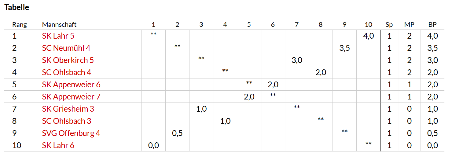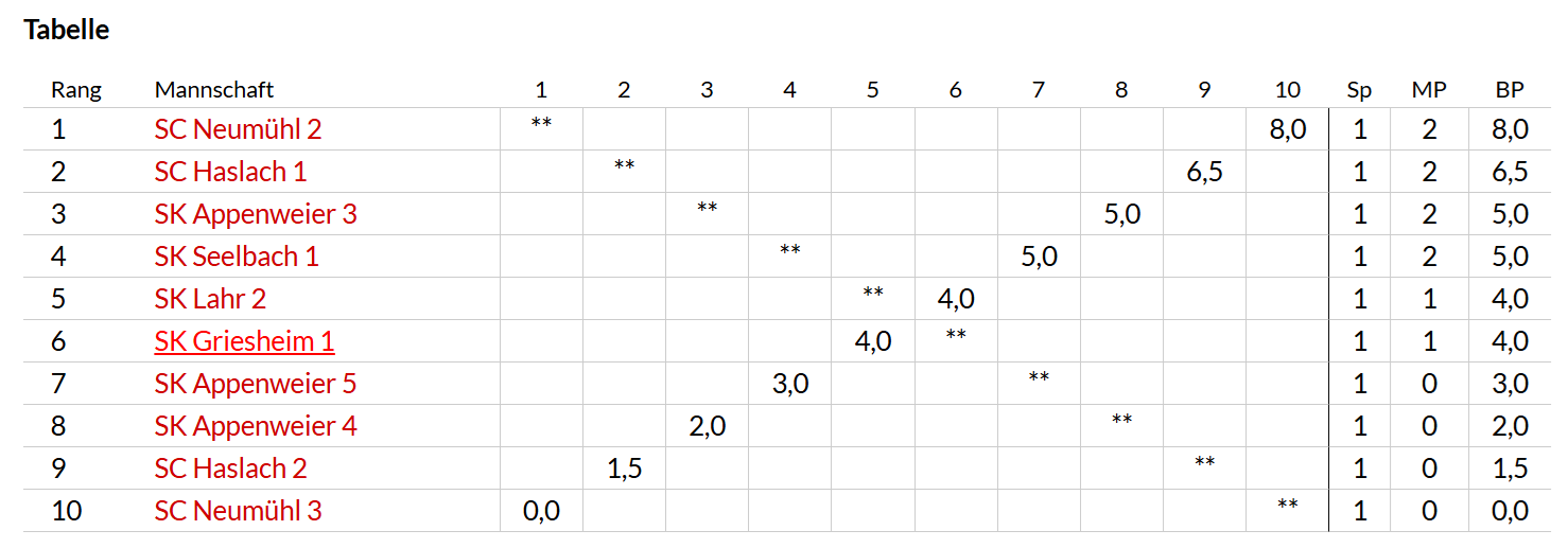 Bezirksliga: SK Appenweier 4 - SK Griesheim 1